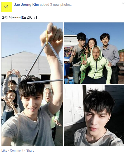[FACEBOOK] 140526 Kim Jaejoong’s Facebook Update: Found the real Triangle with his co-stars